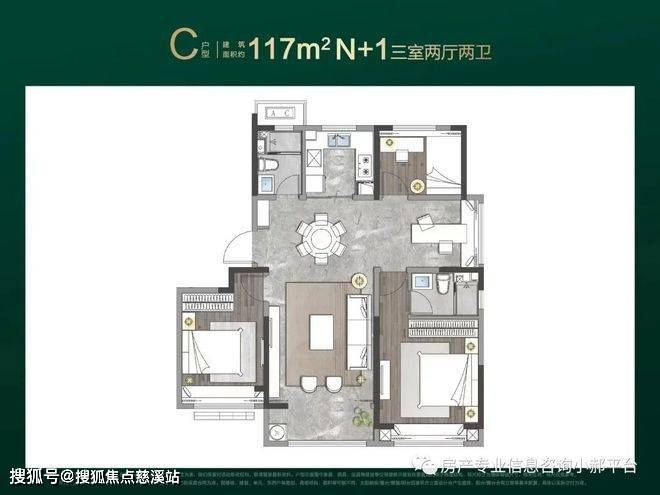【基础信息】总18层,1梯2户,3个单元,18套117㎡(C户型)、54套117㎡双孩房户型(D户型)、36套95㎡精装修房源