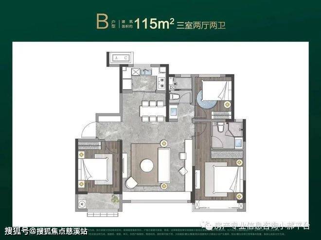 【基础信息】总18层,1梯2户,3个单元,总共108套115㎡(B户型)精装修房源