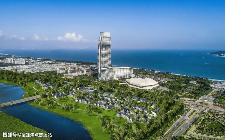 海棠湾核心地段,临海面河,玉带缠腰,河海汇聚呈“敛财”之势,背靠中国30000公里海岸线上最高的地标建筑保利瑰丽酒店,远侧是连绵起伏的环山,藏风聚气,得水为上,上风上水的绝佳风水宝地;