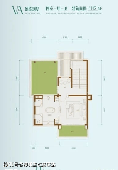 VA户型 独栋别墅 四房三厅三卫 建筑面积145㎡