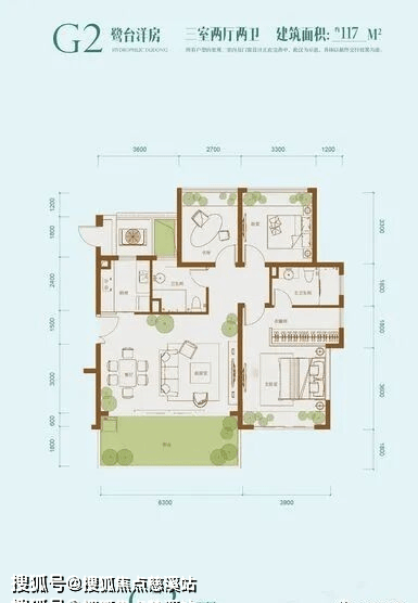 G2户型 鹭台洋房 三房两厅两卫 建筑面积117㎡