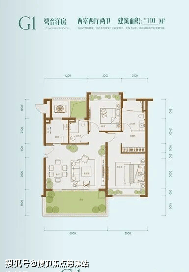 G1户型 鹭台洋房 两房两厅两卫 建筑面积110㎡
