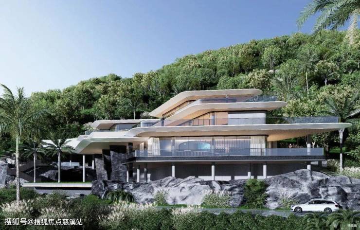 项目因地制宜采用退台式设计,结合山地高差阶梯铺排创新院落,有天有地有景,容积率仅约0.28,产品规划为建筑面积约123-199㎡海涯院落,以纯粹低密之境,重新定义海涯院落的边界。