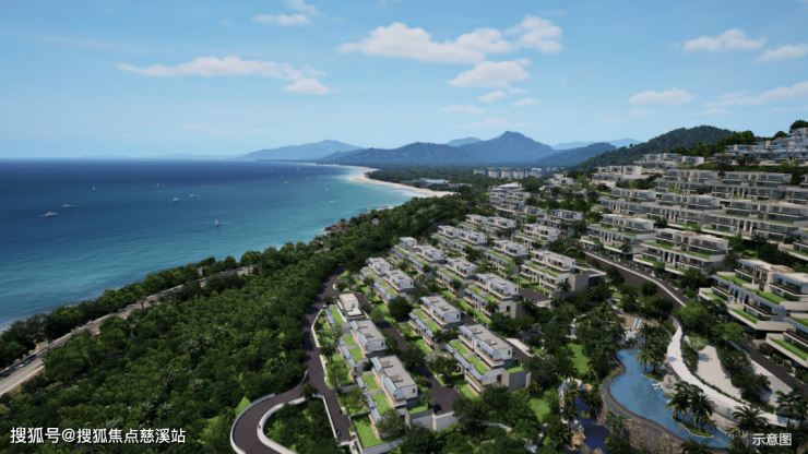 北纬18°黄金度假纬度 | 项目离海直线距离约200米 | 项目最高约130米高涯瞰海 |无边海涯泳池 | 约0.28容积率低密院落