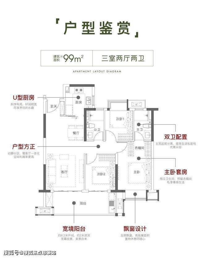 跑道大阳台+可拓横厅+三开间朝南+卧室多飘窗的全明设计,赋予房间充足阳光。