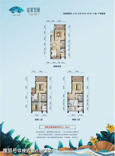 235-241平米,赠送57-88平米负一层,花园面积80-350平米。总价398-721万;