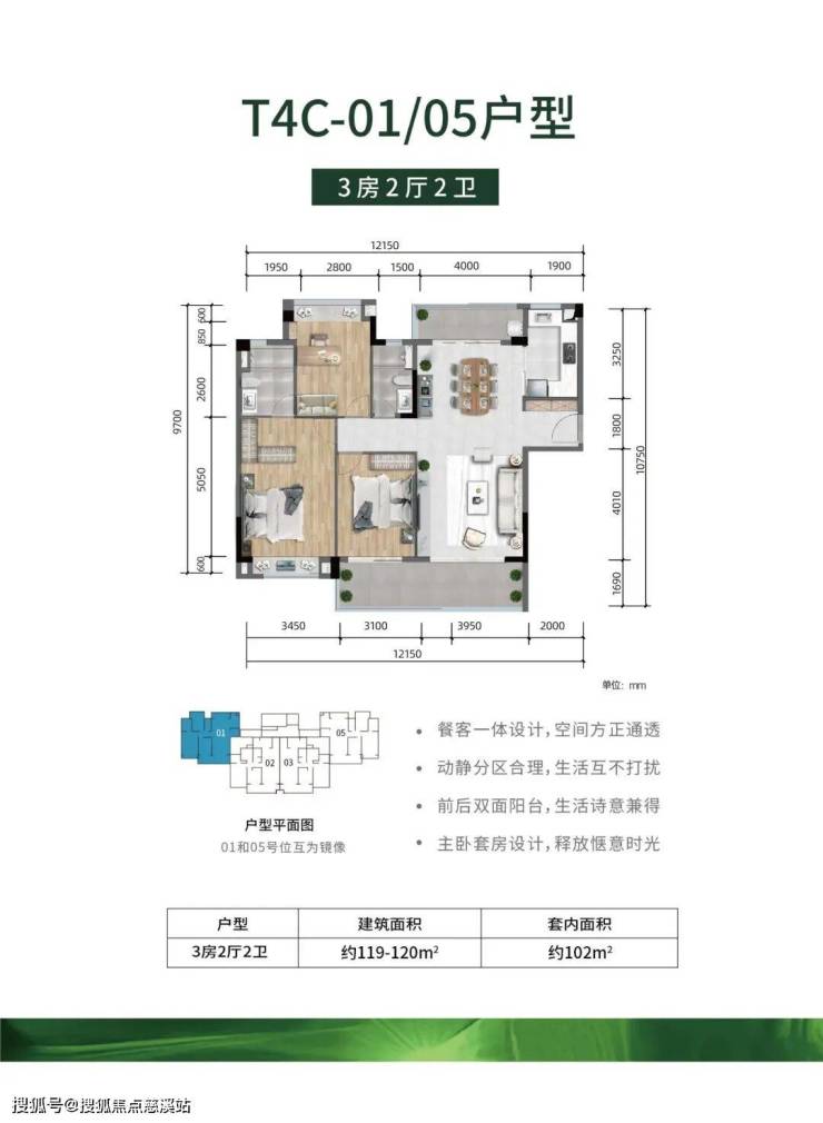 -全明户型,方正实用、公摊低,大主卧、超大景观阳台设计