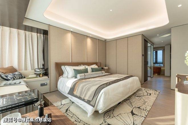 我们可以用一个形容词来概括,超级主卧,而这是基于其宽广的生活场景。比如,进门处有个mini吧台,可以品味红酒,有一些情趣,属于夫妻之间。