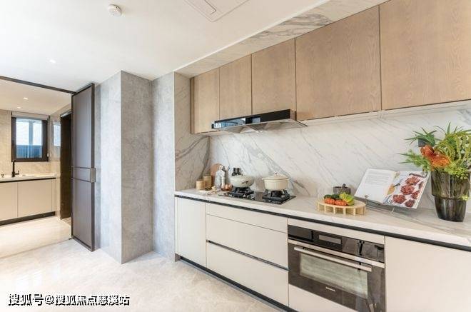 在这里,你可以定制整面的收纳柜,还可以打造成藏酒墙;又或者是一个消杀空间,在当下,这可谓是居家必备。玄关的两侧,分别是餐厅厨房、客厅阳台,很显然,这种布局带来的是动线流畅。