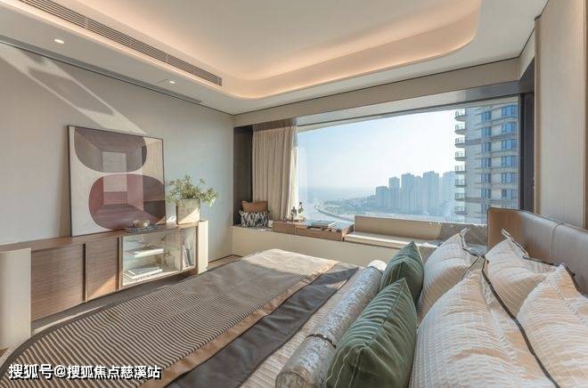 特别是主卧,建议现场体验。这里营造的是,一个让你一推门就能发出一声“哇塞”,从心底愉悦的场景。超高的屏占比,在空间上,在景观上,都做到了很好的兼顾,带来IMAX观影享受。每日清晨,睁眼的第一刻便是无敌海景,这种体验无与伦比。