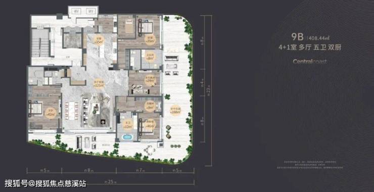 9B 【408.44㎡ 4+1室 多厅 五卫 双厨】