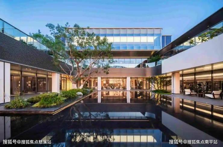 三进院“帆影泽”:下沉庭院与地面庭院立体交融,静水景观、元宝枫与朴树倒影营造“无风也起涟漪”的意境,檐下灰空间消解室内外边界1。