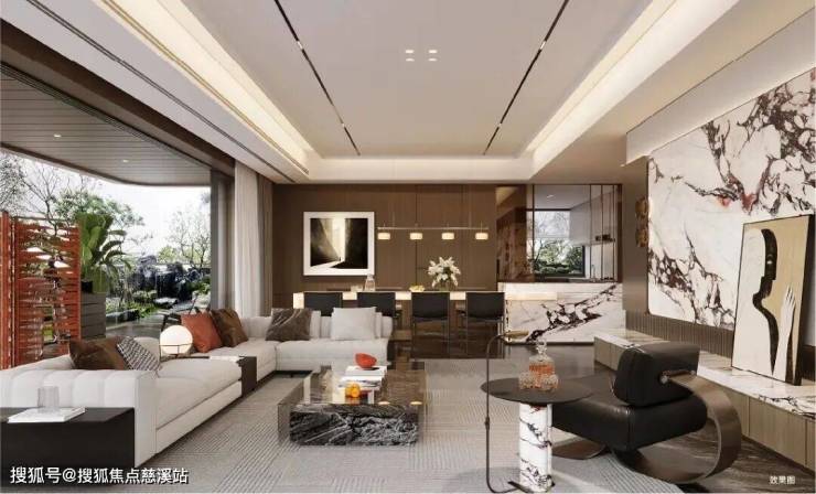 公区以海派为笔触,染现代之气韵,融汇成一方优雅生活的序章