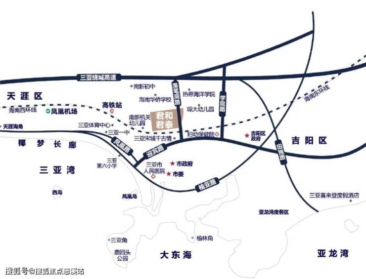 君和君泰项目位于三亚环城高速荔枝沟出口处(琼州学院对面),属于政府重点规划的月川—荔枝沟—抱坡岭片区,该区域重点规划定位为文化教育、商业贸易核心区;由学府教育区、公共服务区、行政商务区、生活配套区、文化商业区及品质居住区所组成。