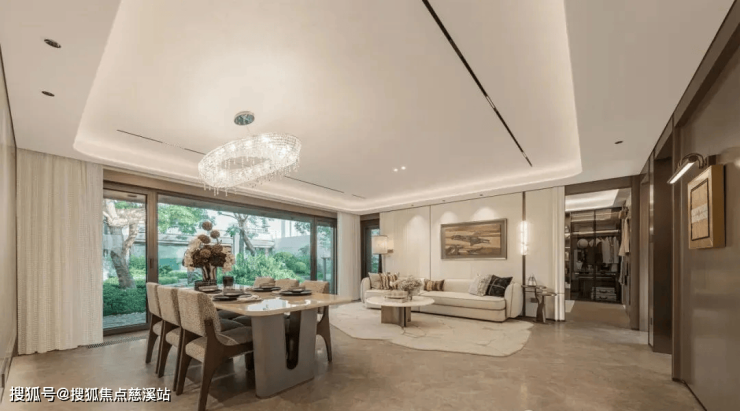 吊顶阴角均做弧形处理,弱化生硬棱角的同时,让光线折射更柔和均匀;