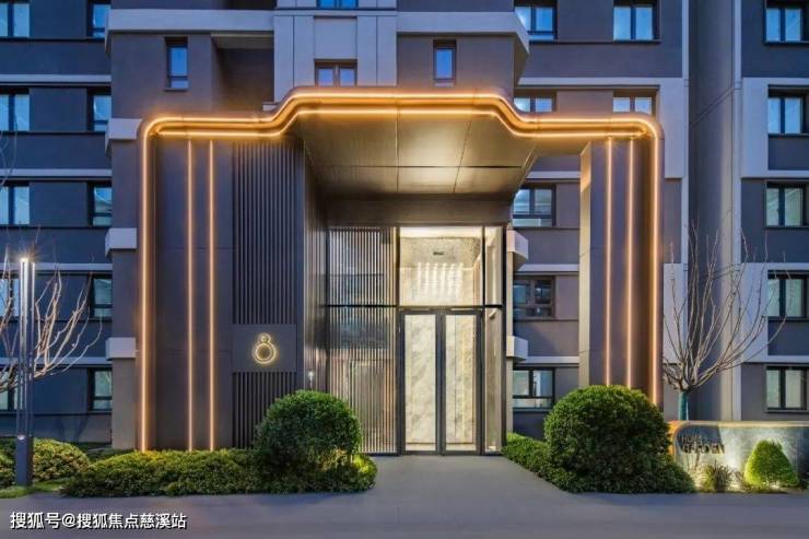 东入口为主大门,宽约30米,进深约8米,高约6米。采用仿石砖+铝板搭配铺装,并以黄金分割率来设置人车行出入口,营造归家仪式感。