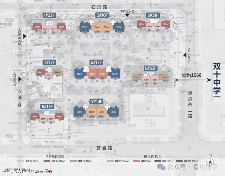 层高:1# 5# 33F 3# 31F 6# 7# 8# 17F 2# 10# 10F 2# 6# 9# 是第四代住宅