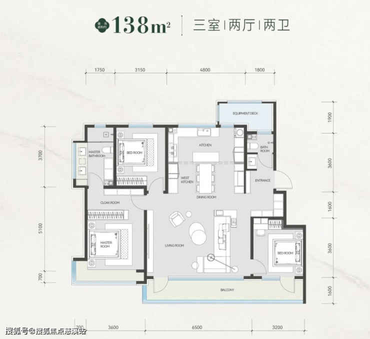 宽厅 LDKB 一体化:约6.5m 奢阔宽厅、餐厨与 约9.7m开敞阳台串联,空间联动性强;