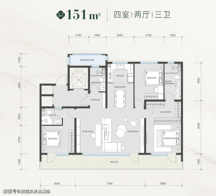 奢阔LDKB一体化:约7.2m 宽厅、餐厨与约14.6m 开敞阳台衔接,满足家庭互动需求;