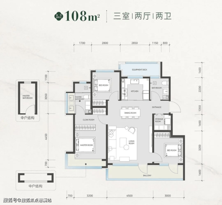 108㎡「雅庭」以 “紧凑不局促、功能全到位” 为原则,在三房两卫格局中,平衡收纳、互动与私密,适配从二人世界到三口之家的首置进阶需求。