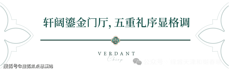 超60 米宽、6 米高的鎏金重檐落客门厅,进口普拉达绿奢石的温润质感、铂金钻的细腻光泽与铜质线条的精致勾勒交相辉映。五重归家礼序层层递进,每一步都满含仪式感,让居者的高阶身份不彰自显。
