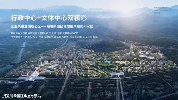 项目所属抱坡新城板块,处于“一核”所规划的三亚总部经济区内,规划为融合文化、体育、行政中心的城市综合服务核心区,以文化艺术、运动康乐、购物休闲和深养田居四大组团,打造花园办公、文化体育等创意产业,未来将成为三亚的高水平城市生活服务新城。