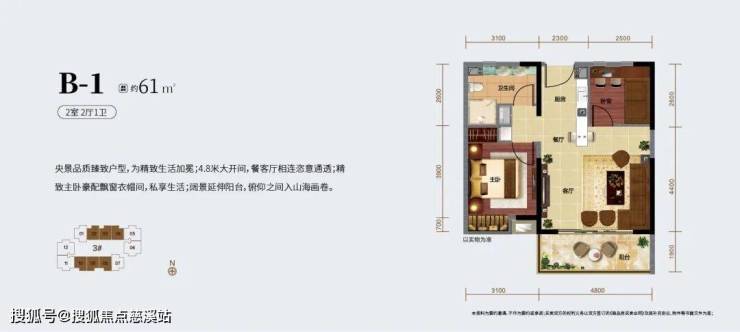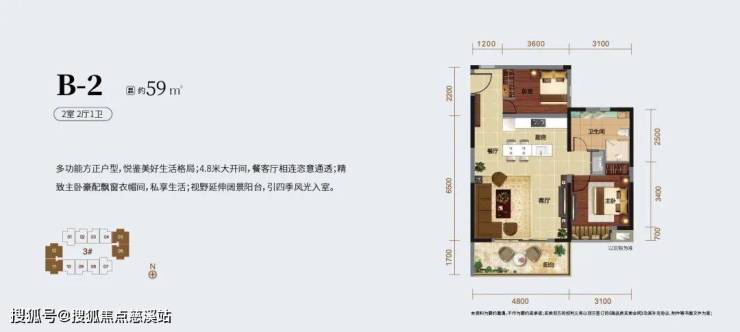甄有品质户型约59-61㎡ 两房一卫