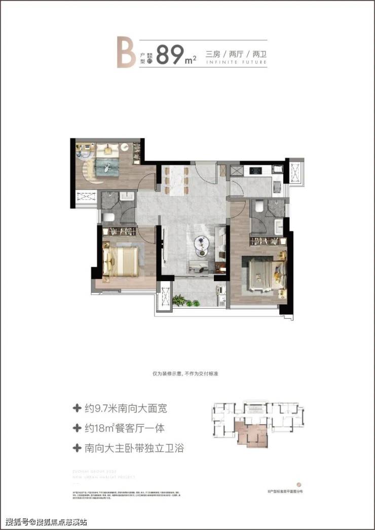 产品定位:项目采用塔楼设计,高层33层,通过89+89+114的2T3配置,预计公摊不低于24%,这在一定程度上影响了得房率。