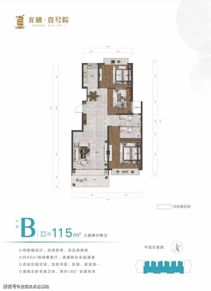 在售户型:115㎡、135㎡,三房两厅两卫