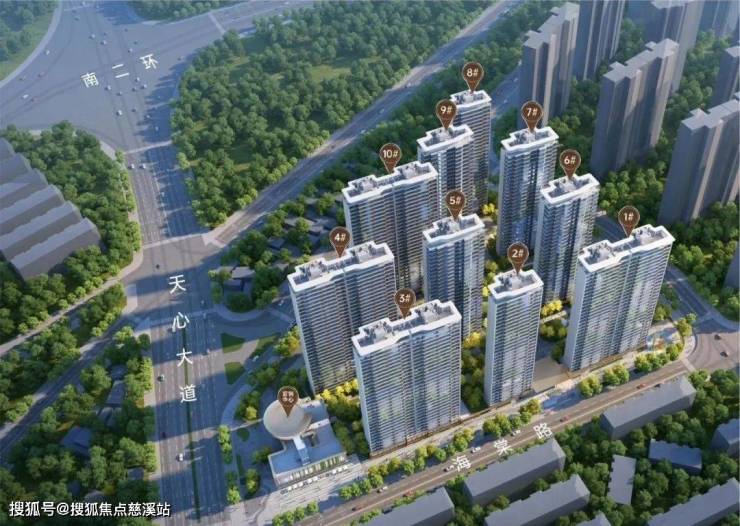 天序1958总体规划10栋高层住宅(31/32层),其中1、3、4、10栋为双拼,配建幼儿园(东侧出入口),临街社区商业(现营销中心),总建筑面积约17万㎡ ,整体布局相对宽裕 ,南门至9号栋加上5-10栋、6-7栋之间为配置的十字型中央园林,绿化率达35%,容积率:3.1,车位户数比:1.09