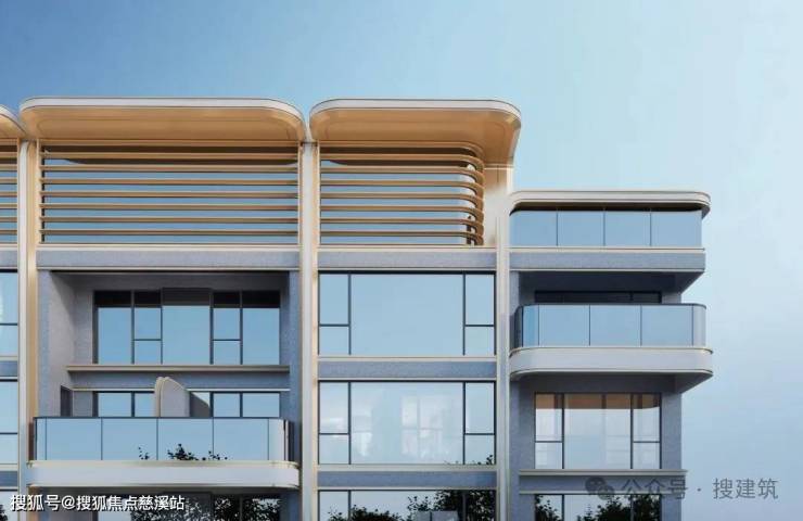 建筑立面以龙山黑陶器型曲线,结合现代建筑风格,打造顶部精致塔冠、微弧倒角设计,形成强烈视觉符号;以沉香米黄主色调,搭配香槟金铝板,呈现精致典雅的美学风格,致敬中原文明。