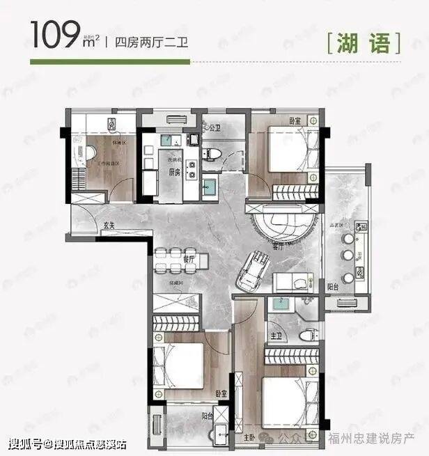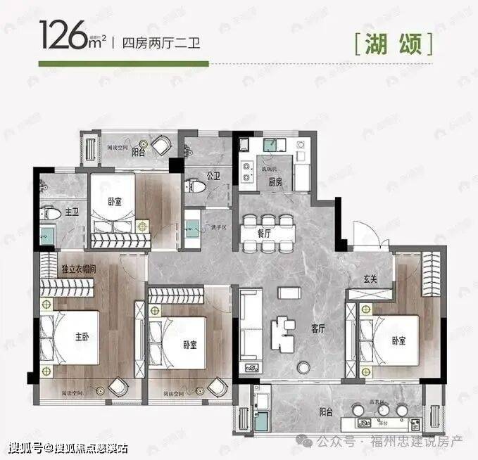 项目位于晋安区北区涧田湖片区,容积率2.2,纯商房,共6栋小高层,360套房源。户型有5种:75平、89平三房,109平、126平、143平四房。75平中间户三开间采光佳但不通透;89平、109平端头户双阳台三面采光;126平、143平一梯一户改善型产品,仅7号楼有,公摊小,143㎡还能看湖,不过有暗卫。