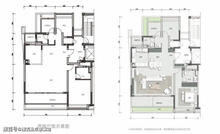 南向客厅面宽7米进深4米,空间利用率高,L型厨房联动客厅,南向面朝景观公园带。