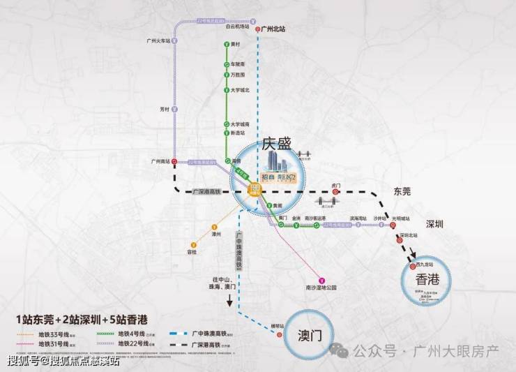 广中珠澳高铁(规划中):在庆盛设站,未来通达中山、珠海、深圳、澳门。