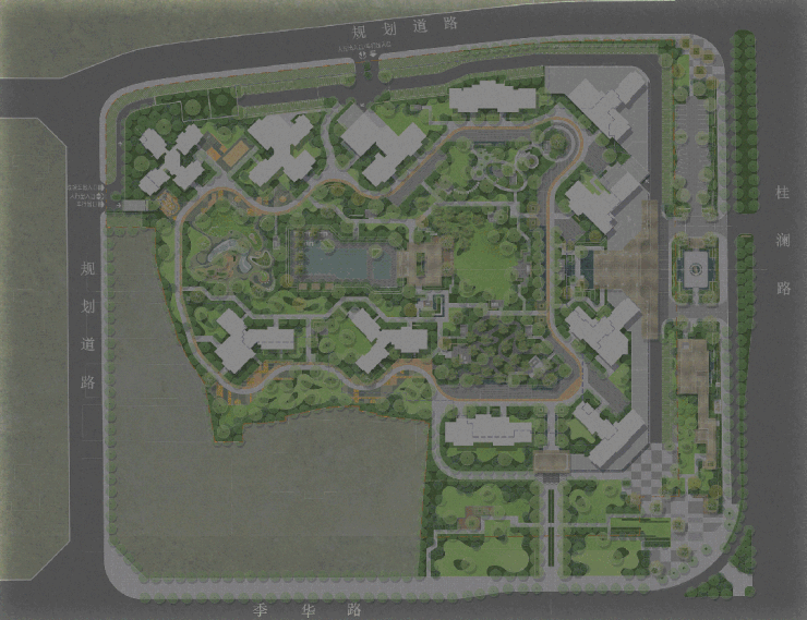 项目主动让渡楼体与桂澜路、季华路的距离,保持约50米的间距,并对红线外围约1万㎡的城市公园进行定制化打造,种植高大乔木形成绿色缓冲带。