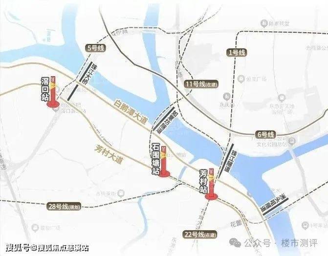 除了4条地铁交汇(广州地铁11号线、地铁22号线、地铁28号线等),白鹅潭大道贯通11公里江岸线,如意坊隧道明年通车后,东西岸通勤效率将大幅提升。