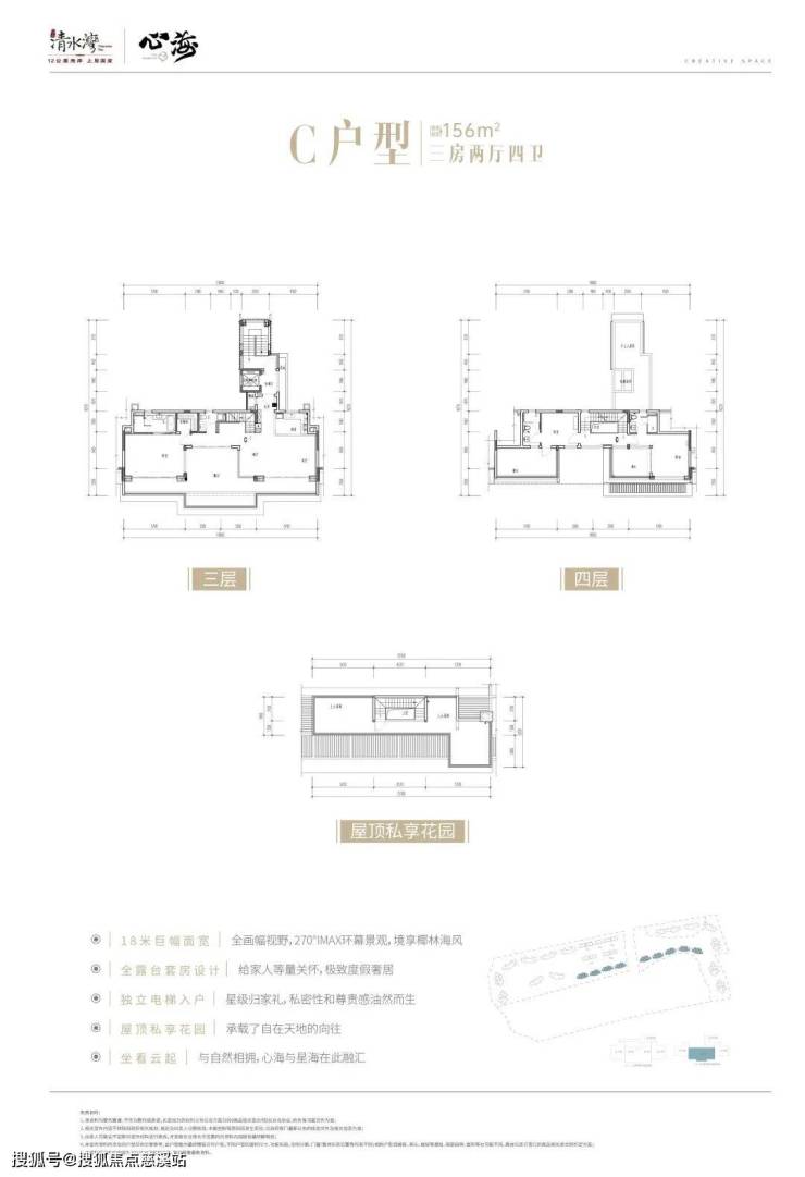 叠拼产品C户型:建筑面积约156㎡,三房两厅四卫