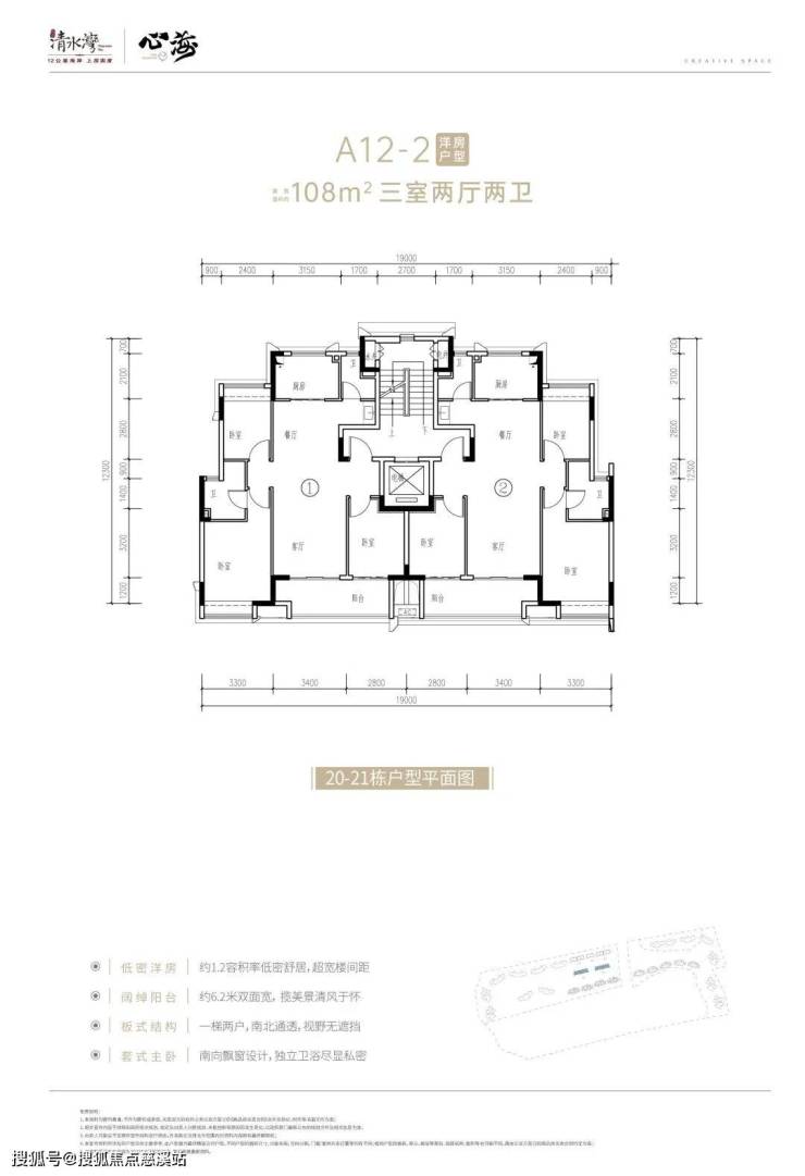 洋房产品户型图:建筑面积约108㎡,三房两厅两卫