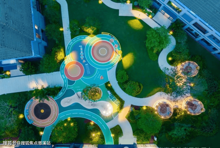 不同景观节点的深度连接,将自然融入全龄颐乐,营造出生活品质感和艺术感兼得的现代园林景观