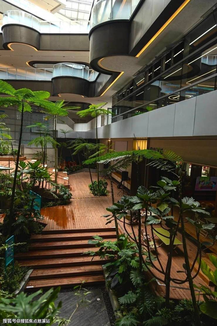 入东岸麓洲,仿若步入热带梦幻之境。在这里,商业空间与自然完美交织。森林湖泊环绕的 “玻璃盒子” 中,户外竹木地板与墙板随处可见。竹材与海芋、面包树等绿植相得益彰,砗磲点缀其中,巧妙隔开外界喧嚣,带您轻松步入宁静商业天地。