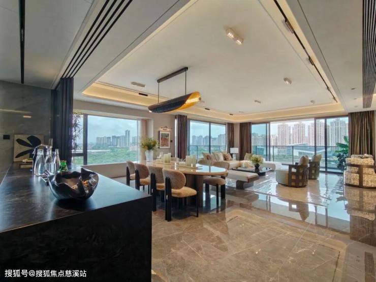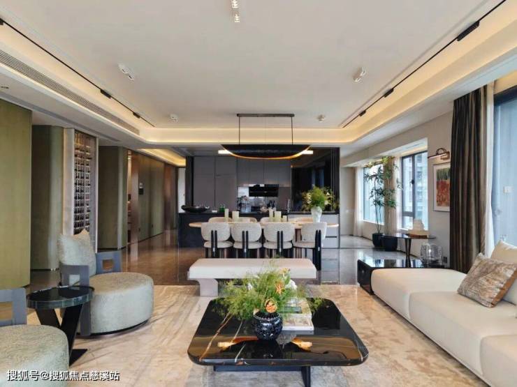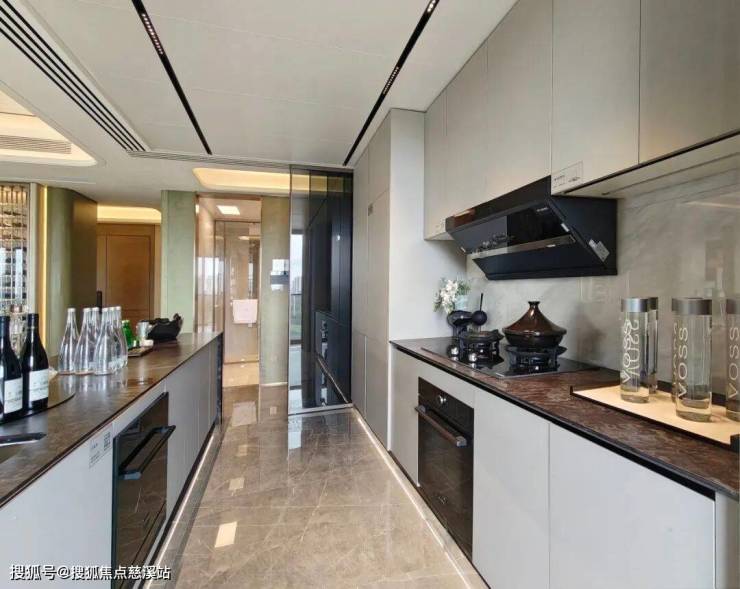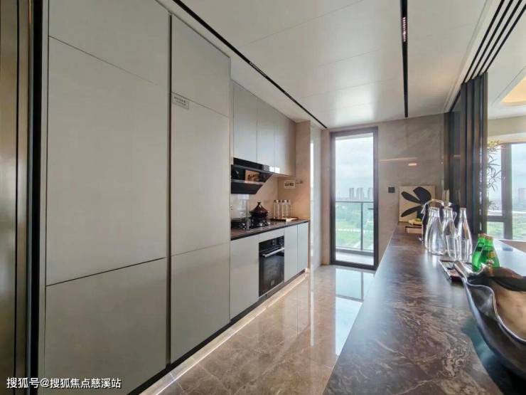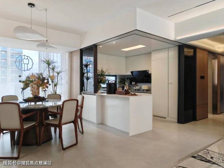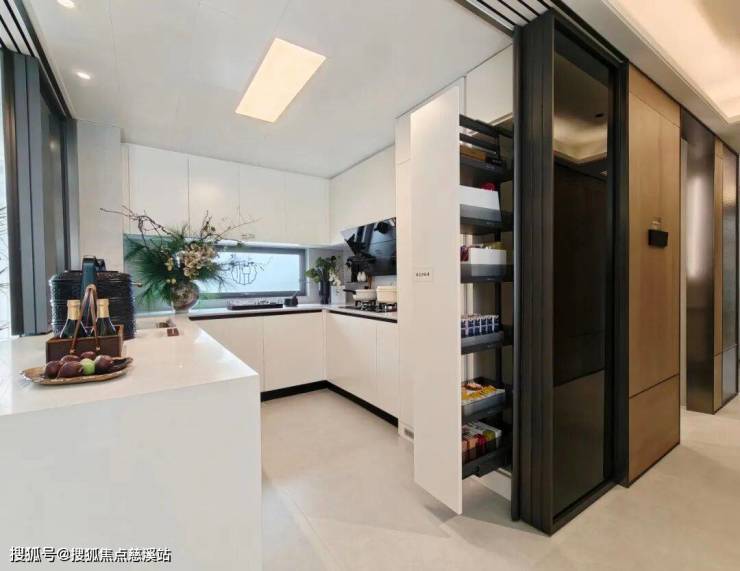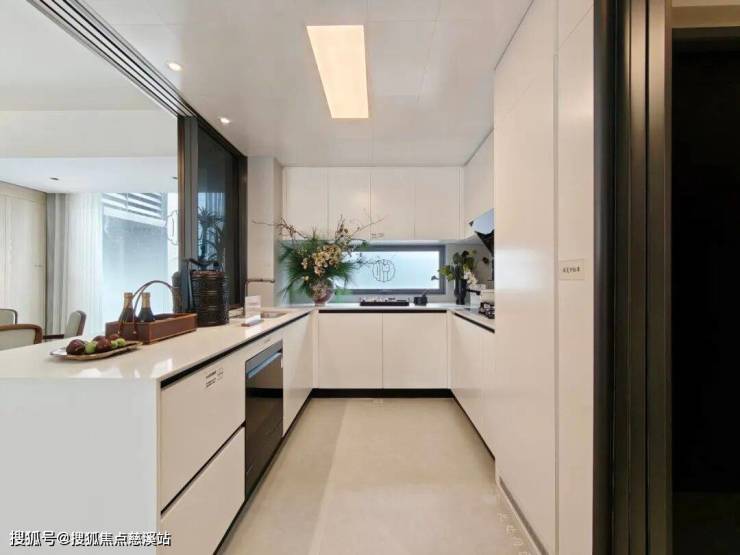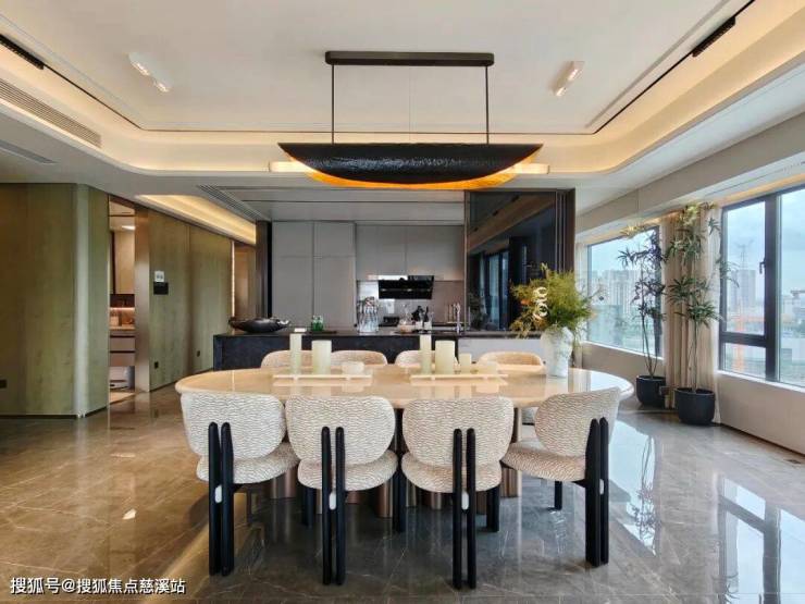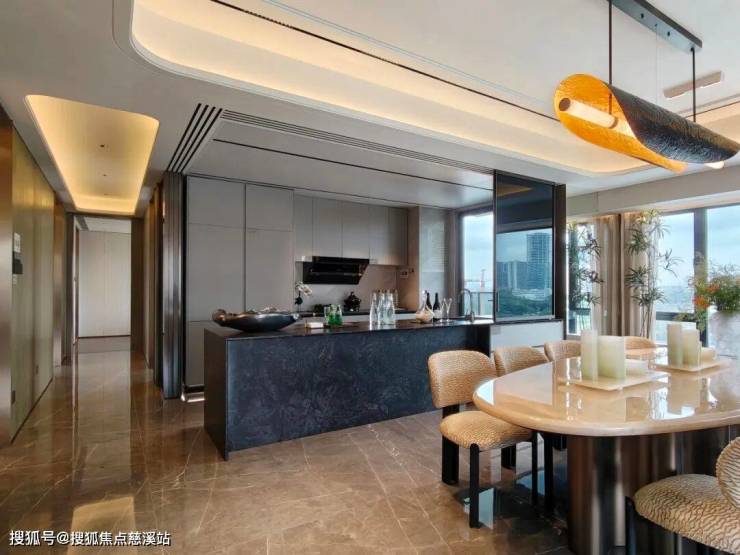 大户型厨房是开放式布局,开放式布局贯穿整个空间,使视线从一端延伸至另一端不受阻碍,最大限度地保留了面朝景观的通透感,也让自然始终伴随居住日常。