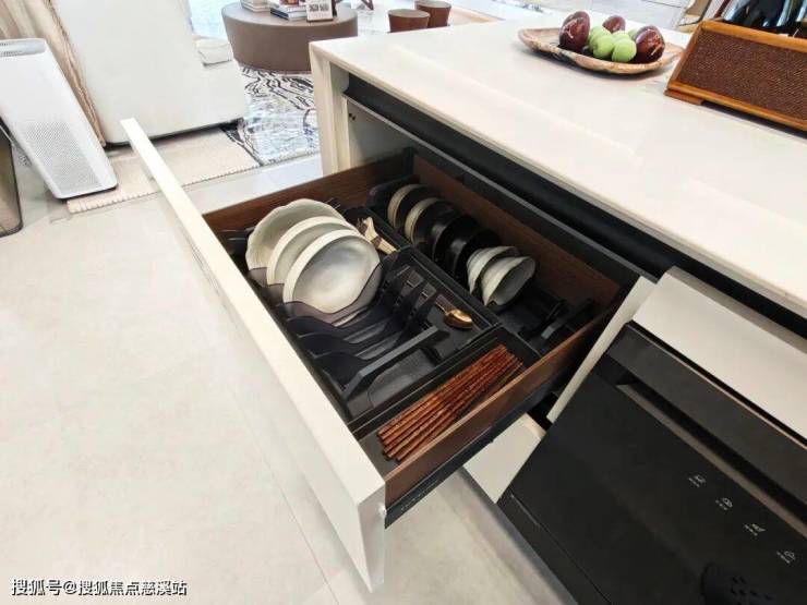 橱柜配置悍高的高伸拉篮、碗碟拉篮、调料拉篮等配件,见缝插针,在方寸之地可纳万物。高伸拉篮拥有小空间拓容量、易调节简安装、一体化更坚固、双轨道更平稳等特点。