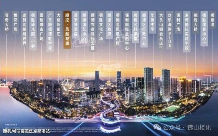 在交通方面,顺控凤起观澜项目周边形成 "三横三纵" 交通路网,德胜大桥、碧桂路、广珠西线高速串联广佛,通达广州、深圳、珠海等城市。公共交通方面,距离佛山地铁3号线顺德欢乐海岸站约2.9公里,可换乘广佛环线直达广州南站。对于商务出行人群,项目毗邻顺德港和嘉信候机楼,可快速接驳香港国际机场及周边城市。