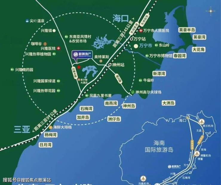 项目择址于北纬18度全球黄金度假带——海南省兴隆镇兴梅大道与莲兴路交汇处。
