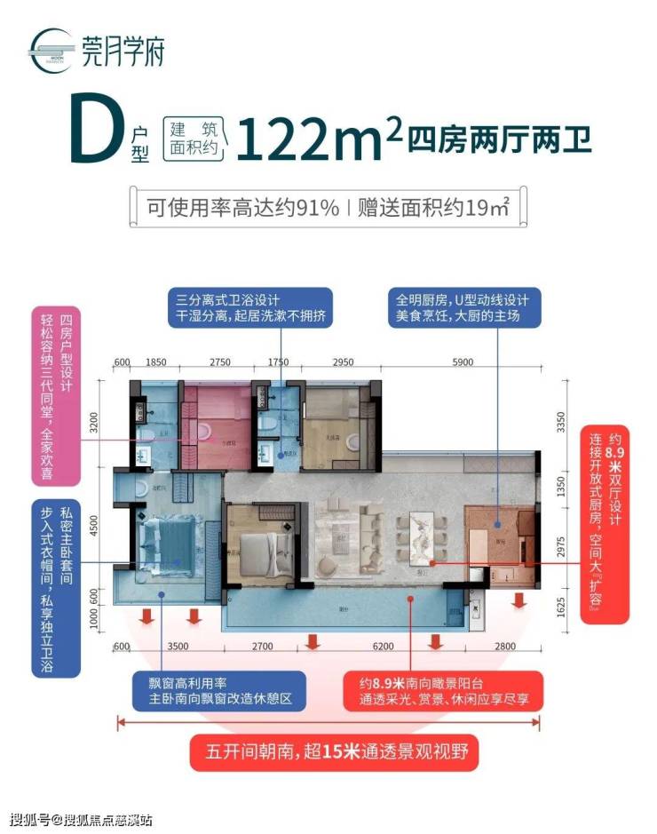 户型亮点:约8.9米南向瞰景阳台;五开间朝南,超15米通透景观视野👇