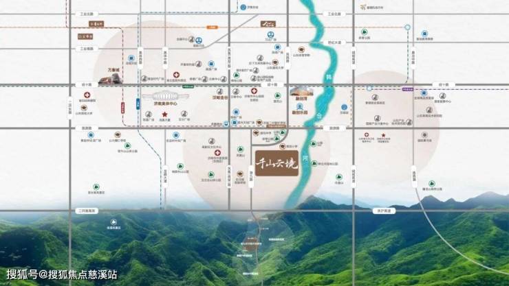 旅游路的价值,远非一条交通动脉可概括。它是济南的"文明脊脉",北侧链接着奥体、汉峪、CBD的现代繁华,南侧绵延着泰山余脉的原生野趣。这条轴线划分的不仅是地理空间,更是两种文明形态的交汇——而千山云境,正踞守在这条文明形态和土地能量转换的最前沿。