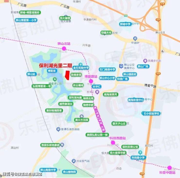从位置来看,保利湖光里二期位处博爱湖北湖片区,坐拥一线望湖资源,一路之隔建有金石实验中学、规划待建石门中学博爱湖校区,与在建佛山地铁4号线的站点相距不到500米,距离城际狮山站不到1公里。