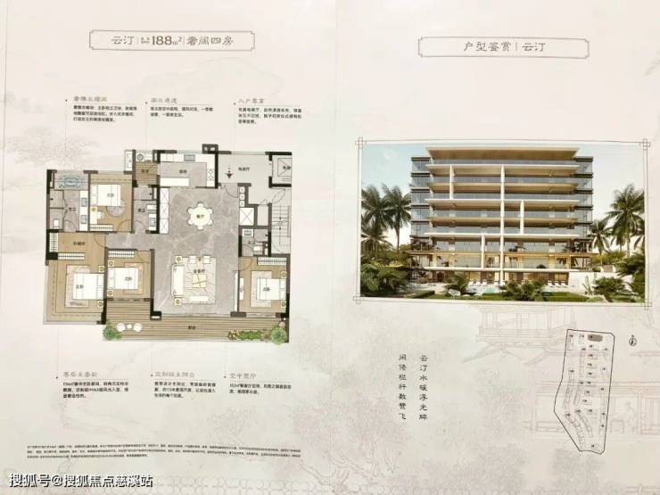 目前,小高层主推1、2栋,涵盖178、188㎡奢阔四房,其中低楼层为178㎡,4层以上可望湖为188㎡,带装修均价约1.8-2.3万/㎡。