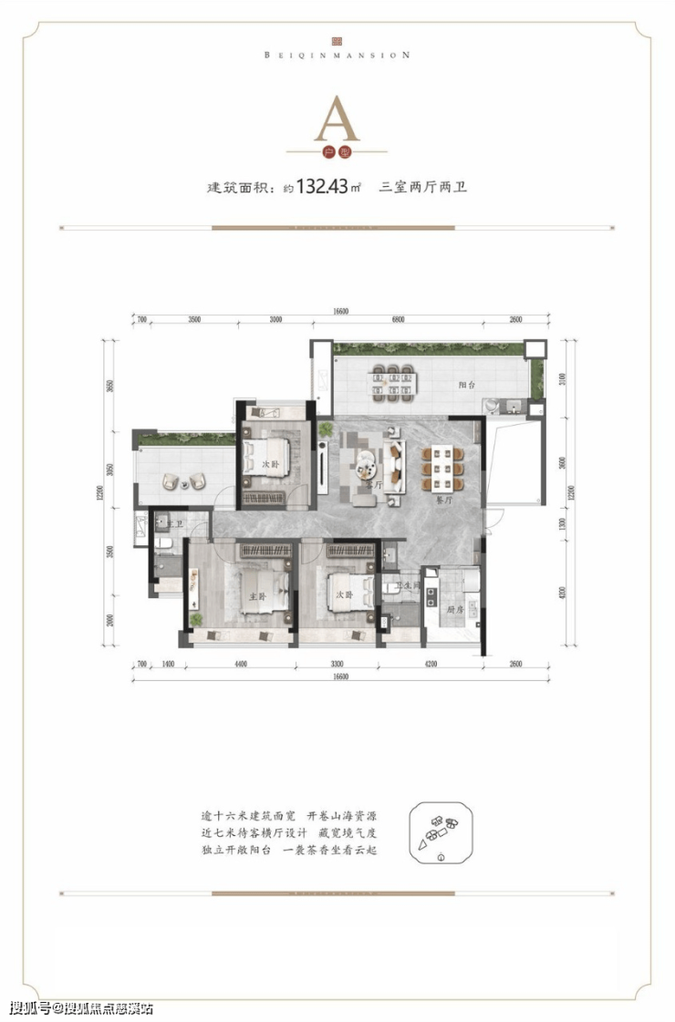 主力户型逾16米建筑面宽,府藏奢阔天地;约4.2-6.8米横厅设计,逾9米观景阳台,于热带山海之间,体验生活悠然;