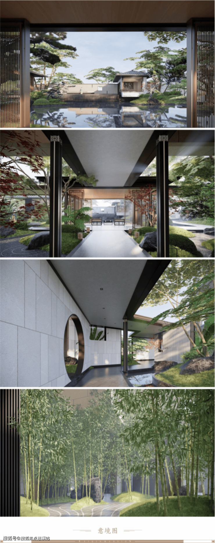 一进山水院,以叠石奇景,精巧花木为主,赋山形,观山语,呈现了一种如居山中的归家体验。二进镜水院,以水景、曲桥、角亭为主,呈现了符合中式生活特色的园林空间。